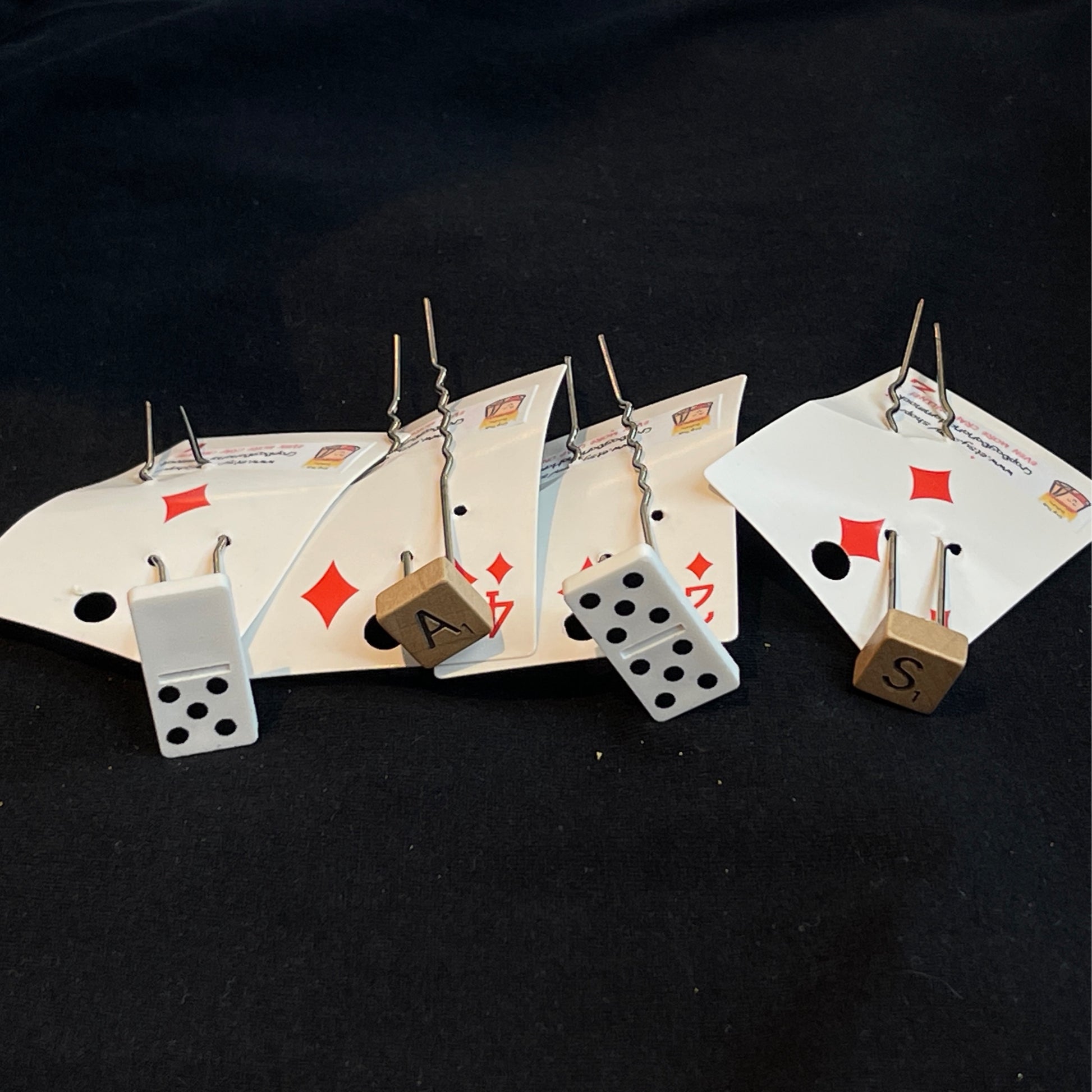 Domino and Scrabble hair pins by Crapbagbananahammock